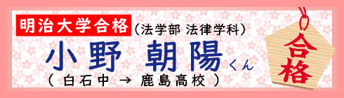 「総体が終わった後はすぐに意識を切り替える」と以前から意識していたので、自分が感じていた遅れを早めに取り戻すことができました。受験勉強のコツは、塾で共通テスト過去問に取り組むだけではなく、志望校にあったレベルの参考書を自分で決め、それを質問しながら完全に理解することだと思います。また、友や先生と一緒に最後まで諦めずに勉強を続けられたことも大きかったと思います。