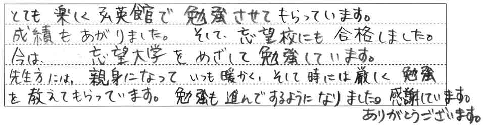 弘英館に通っていただいているお子様の保護者さまから貴重なお声をいただきました。